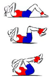 Warming UpMiddle BodyLieflatonyourbackonthefloor,andbringyourkneesuptoabout90degrees.Then,withyourhandspositionedeitherbehindyourhead(donot pullonyourneckasyoucomeup)orreachingforward,slowlyliftyourupperbodyusingyourabdominalmuscles.Keepyourbackrounded throughout the exercise, as it is very important not to arch the back.To do this you should concentrate on pushing your lower back into the floor. You can vary the above exercise by reaching forward to the right or left of your knees, as this will use slightly different muscles. You can alternate from side to side or do five on one side followed by five on the other, or whatever you can comfortably manage.For your lower abdominal region, bring your feet off the floor, place your hands on either side of your head, crossing the ankles. Using only the abdominal muscles bring your knees toward the chest and elbows and shoulders toward the knees.